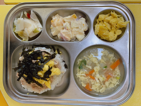참치마요덮밥 단체급식 : ê¸ìê³µì§ì¬í íêµê¸ì ì림ë§ë¹ ê´íìê³ ë±íêµ - 참치, 계란 2개, 양파 1/2개, 밥한공기, 김 조금, 마요네즈 조금 간장 1스푼, 설탕 1스푼, 올리고당 1.5스푼, 식초 1스푼 참치기름을 빼주세요.기름을 쫙쫙!